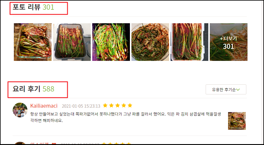 ▲ 어떤 반찬을 선택할 때 랭킹과 함께 살펴보기 좋은 것이 바로 리뷰와 후기입니다. 얼마나 많은 사람들이 좋아하는지 이를 통해 확인해보세요.