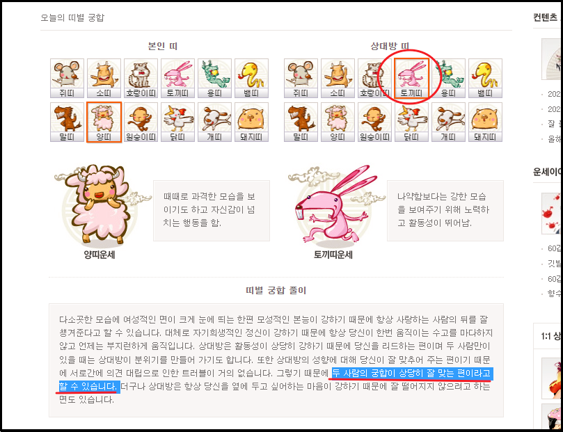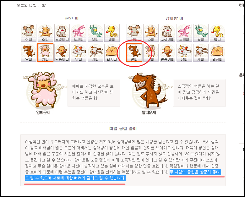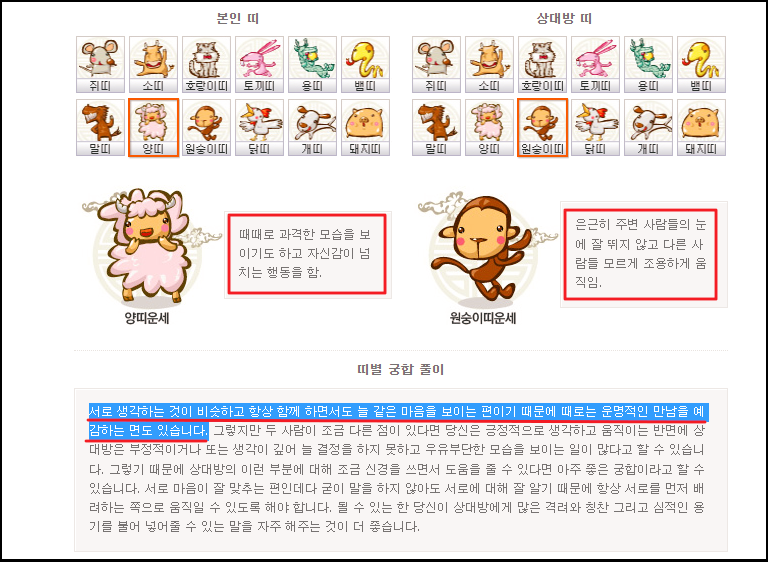 앞서 살펴본 오늘의 띠별 궁합 서비스를 이용해 보겠습니다.