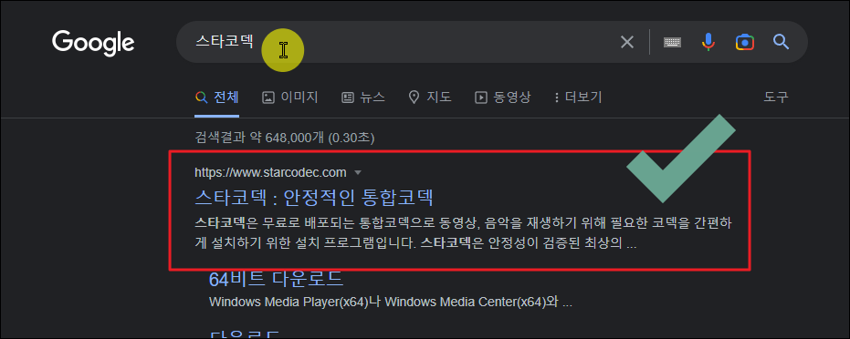 일단 통합코덱을 무료로 설치하는 방법에 대해 먼저 알려 드리겠습니다. 요즘에는 안정적인 통합코덱이 많이 있는데요. 제가 여러 가지를 사용해 본 바에 의하면 안정성이 검증된 것 중에서 가장 많이 사용되는 것은 스타코덱입니다. 그만큼 만족도가 높다는 것이 좋겠죠. 검색을 통해 공식홈페이지로 바로 접속이 가능합니다.