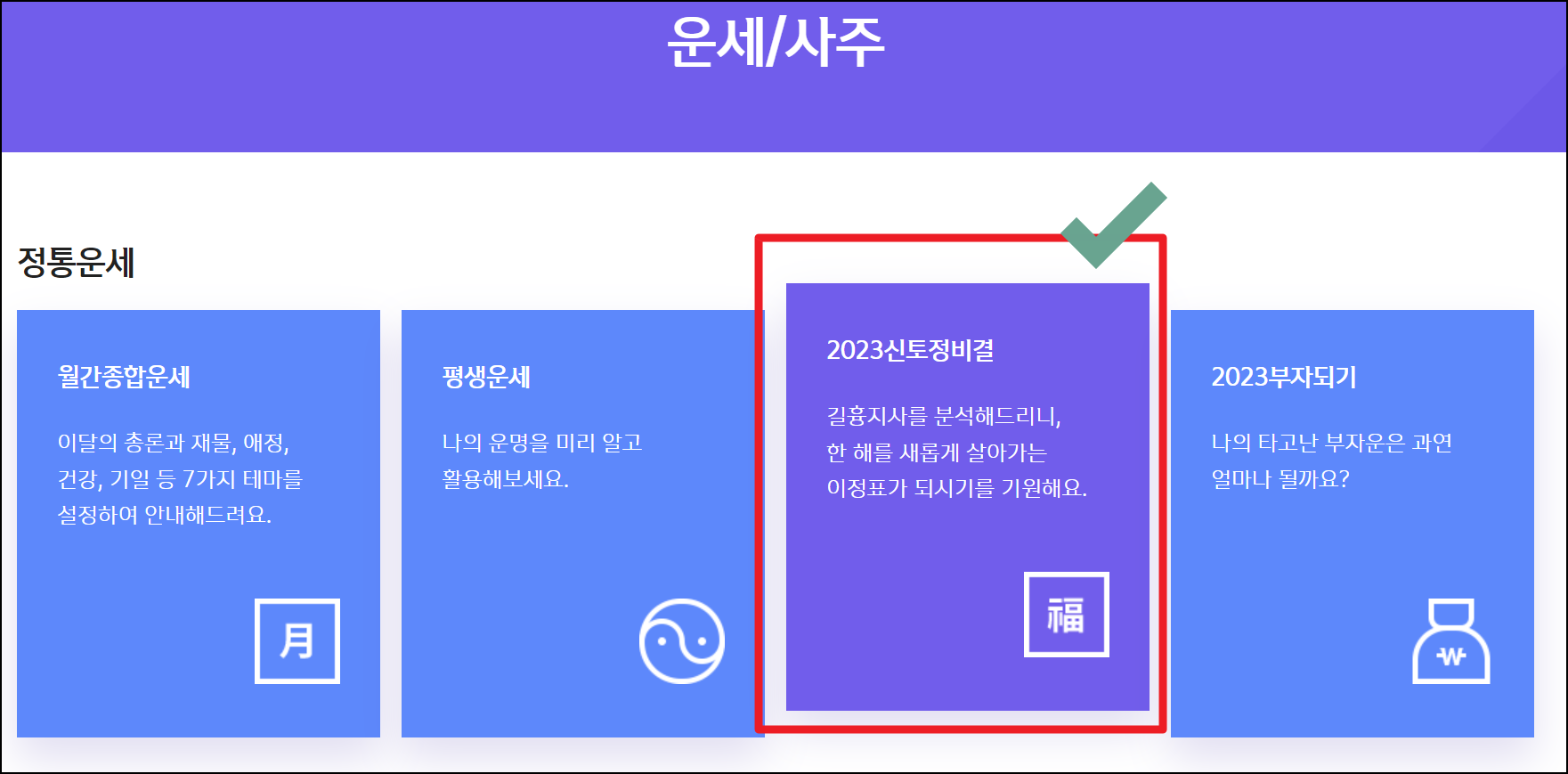 23년 토정비결 무료 서비스 이용하기.