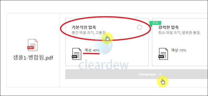 저는 압축 기능을 사용해 보았는데요. 기존보다 40%나 추가로 용량을 작게 만들어서 컴퓨터에 저장할 수 있다고 합니다. "Compress" 버튼을 누르면 진행이 되는데요. 직접 이용해보니 12% 정도의 압축률을 달성했네요. 사용하는 PDF 파일에 따라 압축률에서 차이가 있을 수 있다는 점 참고해 주시길 바랍니다.
