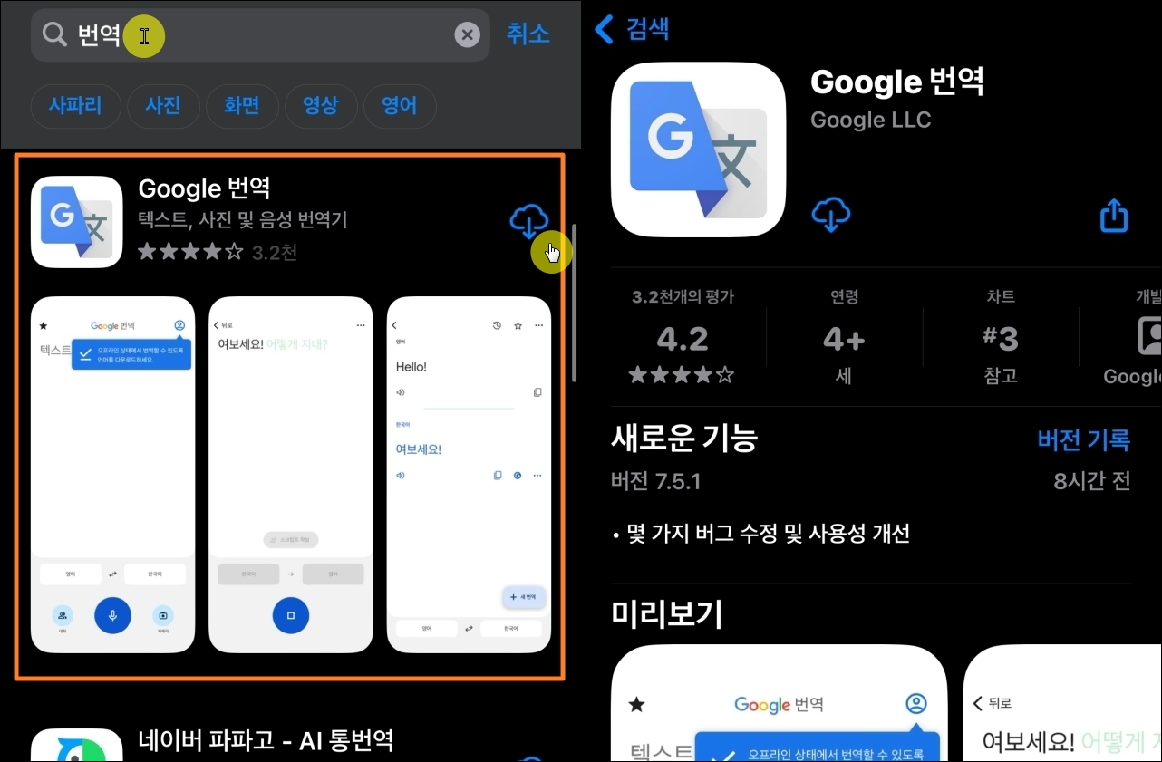 이 방법을 이용하면 여행은 물론이고, 외국어 학습을 할 때에 매우 높은 효과를 기대할 수 있습니다. 스마트폰 앱을 하나 설치해야 하는데요. 구글의 번역기 앱을 설치해 주세요. 무료 사용이 가능한 앱입니다.