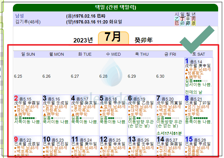 11. 추가로 택일 만세력 서비스도 이곳에서 제공합니다. 이것을 통해 매일마다 나에게 좋은 운이 들어오는지 또는 나쁜 운 들어오는지 파악할 수 있어요.