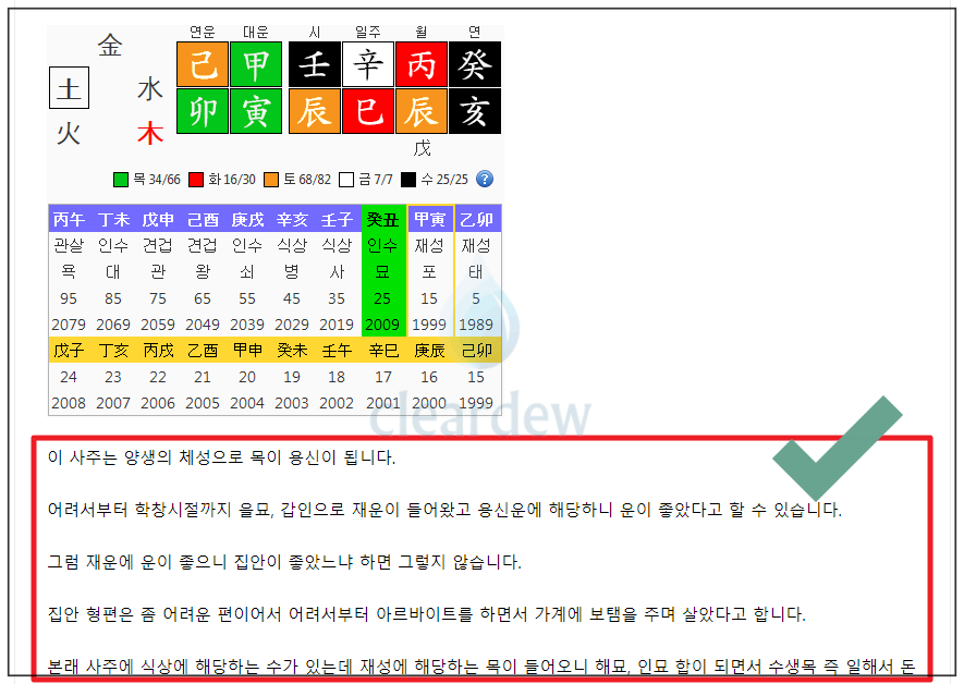 6. 두 번째로 만세력을 보는 방법을 알려 드리겠습니다. 사주 풀이 도우미 사이트를 이용하는 것인데요. 이곳의 경우에는 만세력에 대한 관련 지식이 충분하지 않아도 해석할 수 있을 정도로 풀이가 상세한 편입니다.