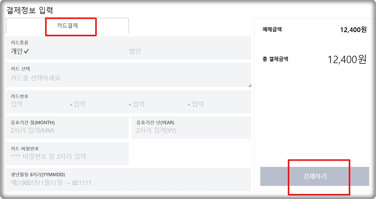 마지막으로 결제를 진행해야 하는데요. 카드에 대한 정보를 입력하면 됩니다.