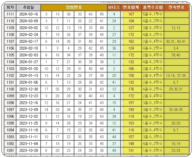 이번 시간에는 로또당첨번호 전체모음 자료를 이용하는 방법과 함께 당첨에 도움이 되는 도구를 몇 가지 알려드렸어요. 잘 활용하셔서 당첨이 되셨으면 좋겠네요.