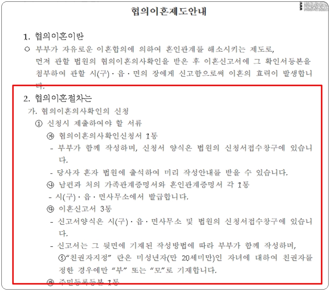 보통 가정법원에서 작성하는 이혼서류는 "협의 이혼 의사 확인 신청서"인데요. 미성년 자녀가 있는 경우와 없는 경우에 따라 사용되는 양식이 달라집니다. 이에 따라 숙려 기간 또한 달라지지요. 재외국인인 경우에는 관련 안내 문서가 있으니 참고하시길 바랍니다.