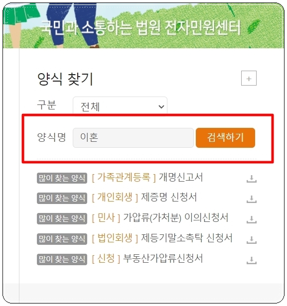 가정법원 이혼서류 다운로드 및 준비사항 안내.