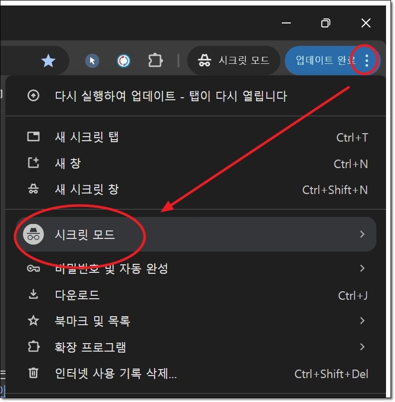 그럼 특가 티켓을 구하는 데에 유리한 비행기표 예약 사이트를 이용하는 방법을 알려드리도록 하겠습니다. 일단 해당 사이트를 이용하기 전에 인터넷 브라우저를 "시크릿 모드"로 전환해주세요. 이렇게 해야 과거에 검색한 이력이 남지 않기 때문에 최저가 티켓을 구할 확률이 높다고 하네요. 크롬 기준으로 맨 우측 상단에 있는 메뉴 버튼을 누른 후 "시크릿 모드"를 선택하면 됩니다.