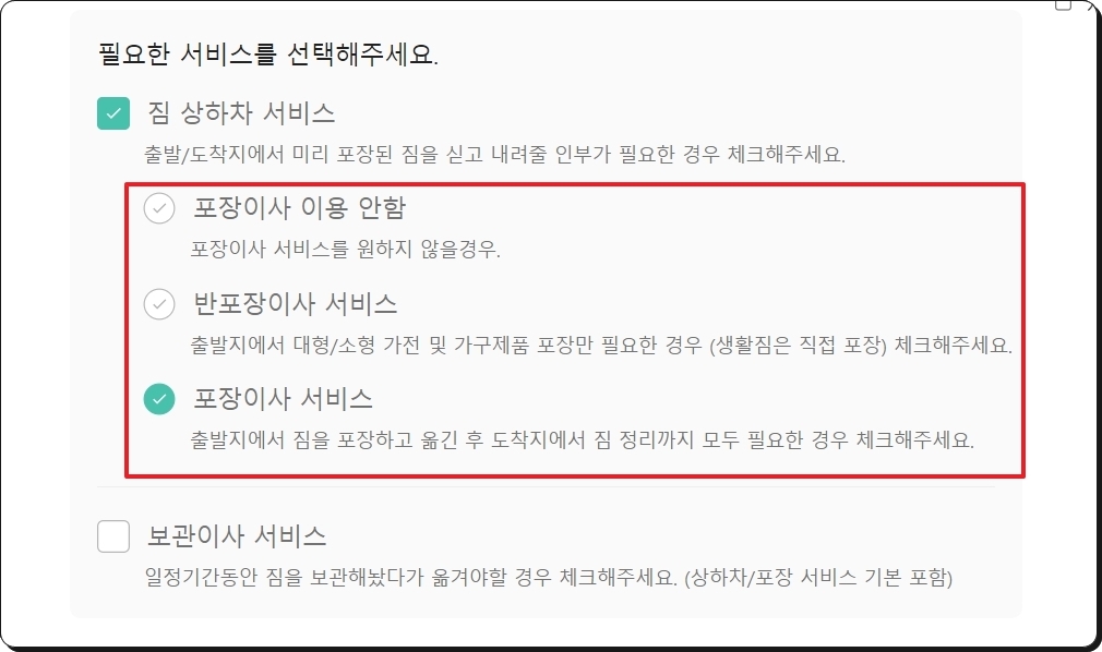 이삿짐 센터에 연락하기 이전에 이렇게 어떤 서비스를 선택할 것인지 결정을 해놓아야 합니다. 앞서 언급한 바와 같이 업체에 따라 포장이사의 의미가 다를 수 있으니 견적 단계에서 확실하게 해둘 필요가 있어요.