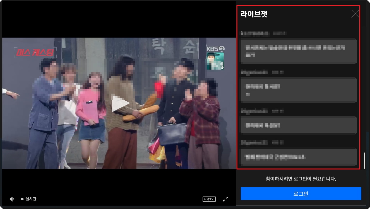 이렇게 개그콘서트를 보면서 라이브챗 기능으로 사람들과 대화를 나누어 보세요. 텔레비전에서는 상상도 못할 기능입니다. KBS 온에어 서비스를 통해서만 이러한 채팅 기능을 사용할 수 있죠. 당연히 무료입니다.