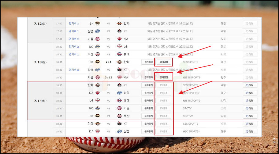 무상으로 프로야구 중계 방송보기 안내.