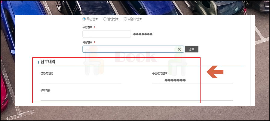 가장 편한 방법은 주차위반를 했던 차량번호로 조회하는 것이에요. 주민번호, 법인 및 사업자번호와 함께 차량번호를 입력한 후 검색 버튼을 클릭해 보세요.