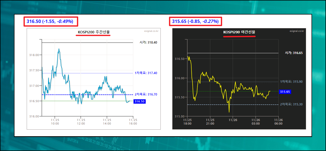 위와 같은 방식으로 주간과 야간에 해당하는 코스피200의 흐름을 그래프로 확인하는 것도 가능합니다.