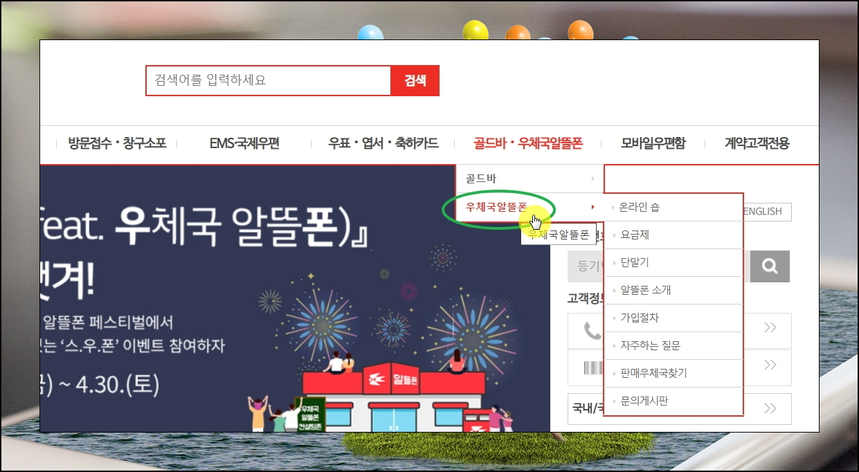 3. 우체국 메뉴 선택