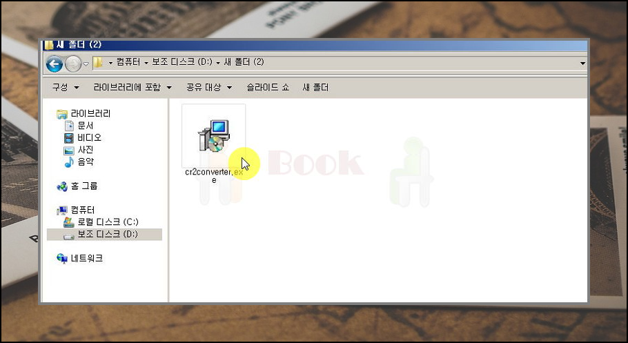 시작 메뉴 폴더에서 cr2 파일 변환 프로그램의 위치를 정합니다.