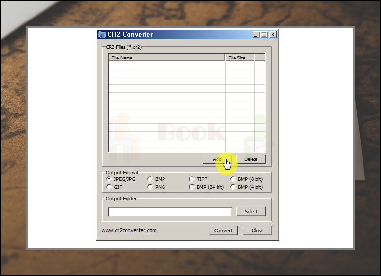 설치가 끝나면 'add'를 누른 뒤 변환하고자 하는 cr2 파일을 불러옵니다.