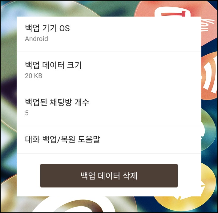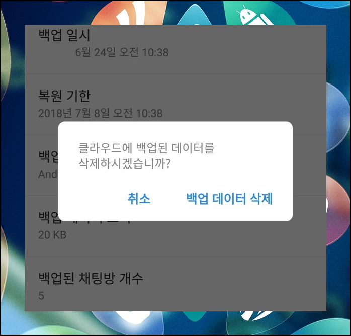 백업을 한 데이터를 삭제하실 수도 있어요. 설정 화면에서 가장 아래로 화면을 내려보면 버튼이 나타납니다.