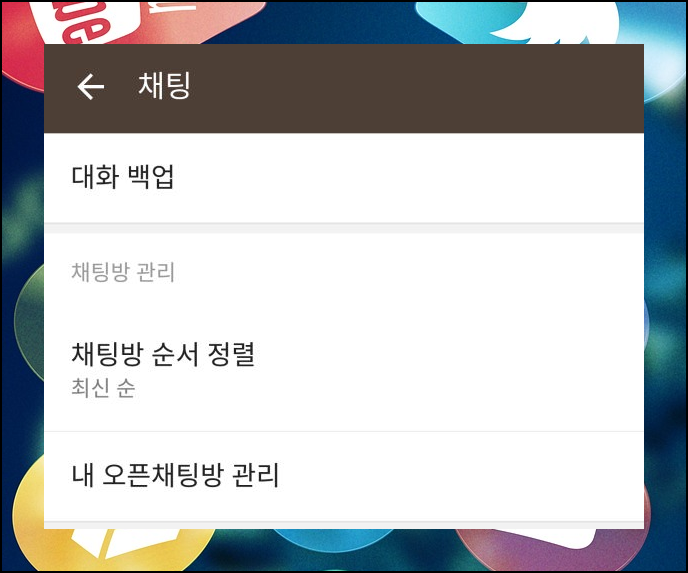 카톡 화면에서 가장 상단에 나타난 '대화 백업' 버튼을 터치해 주세요.
