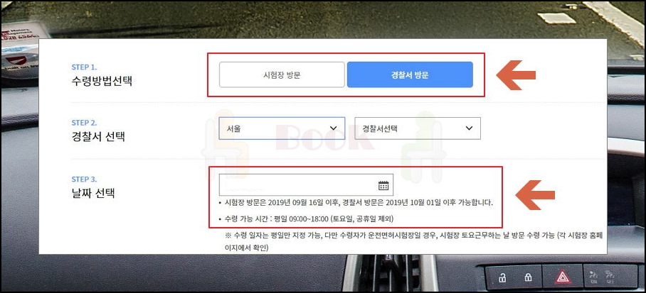 재발급을 받은 운전면허증을 수령하려면 시험장이나 경찰서를 방문해야 합니다. 집에서 가까운 곳을 선택하시면 되는데요. 참고로 평일 오전 9시에서 18시 사이에만 수령이 가능하고요. 빠르게 재발급 받으시고 싶다면 경찰서보다 시험장을 이용하시는 것이 좋습니다. 수령 신청을 한 날짜를 기준으로 시험장 방문이 좀 더 빠른 날짜에 받을 수 있어요.