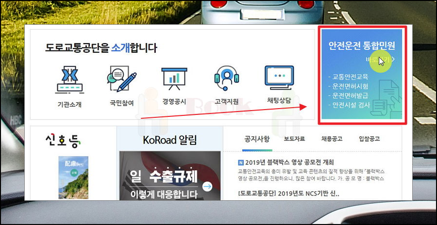 예전에는 도로교통공단 홈페이지에서 운전면허증에 관한 모든 일을 처리했었는데요. 안전운전 통합민원 사이트가 생겨서 이곳에서 대신 진행할 수 있습니다. 이곳에서 교통안전교육, 안전시설 검사, 시험 등에 관한 서비스를 따로 처리해요.
