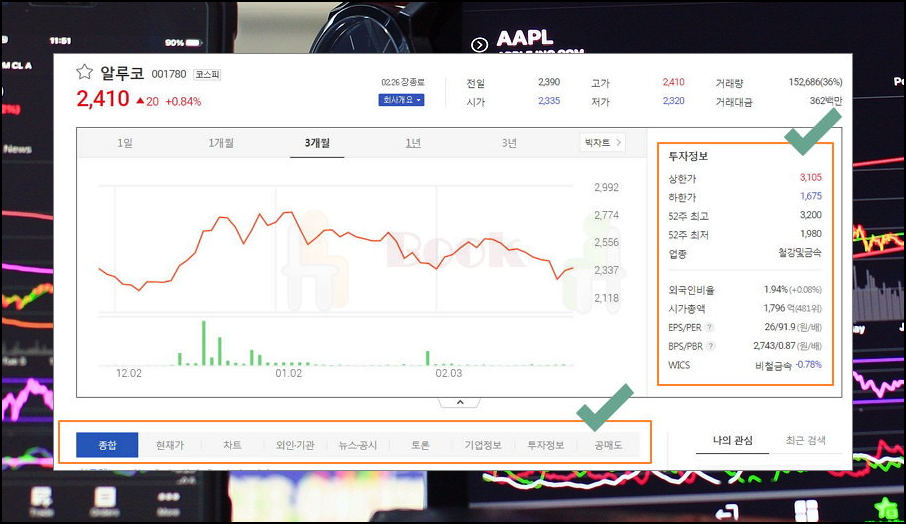 유용한 정보와 주식시세 조회 편하게 하기.