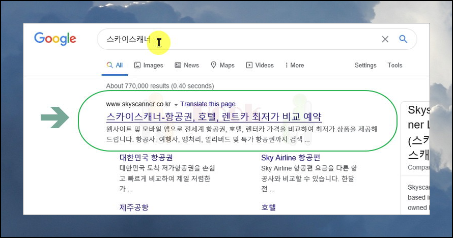 2. 저렴한 제주 여행의 문을 열어요. 사람들이 많이 사용하는 항공권 검색 사이트에 접속했어요. 일반적으로 여행을 할 때 비행기를 이용하면 올 때에도 비행기를 이용하는 경우가 대부분이기 때문에 한 번에 왕복 항공권을 찾거나 애매해요. 스카이스캐너를 통해 저렴한 제주도 왕복 항공권을 찾아볼게요. 마음에 드는 경우 바로 예매도 가능한데요. 처음 검색을 할 때 참고해야 하는 팁이 있어요. 바로 날짜를 [한 달 전체]로 지정하는 것이죠. 이렇게 하면 그 달에 제주도 비행기 값이 가장 저렴한 날짜를 찾을 수 있어요.