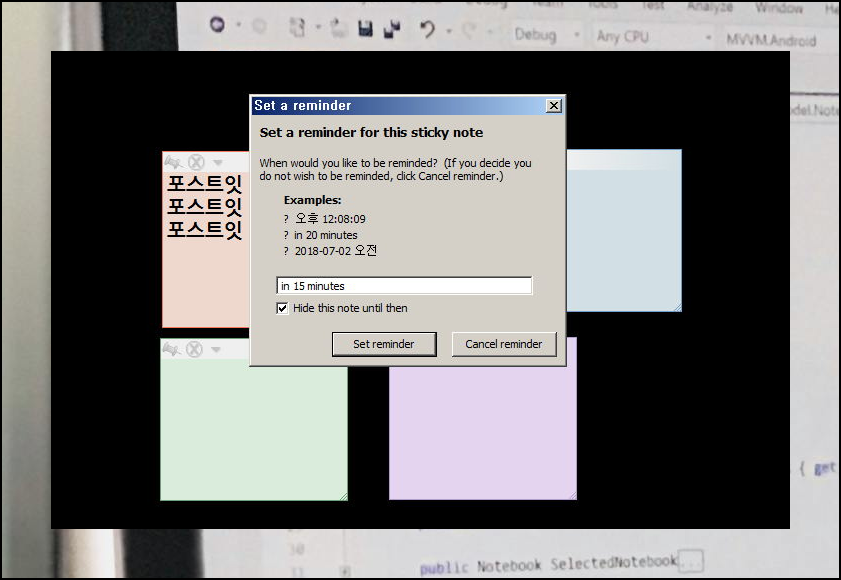 "set reminder" 기능이 특히 유용한데요. 메모를 많이 작성하다 보면 포스트잇의 수가 늘어날 수 있는데, 이때 리마인더 기능을 활용하면 원하는 시간에 필요한 메모가 자동으로 떠오르도록 설정할 수 있습니다.