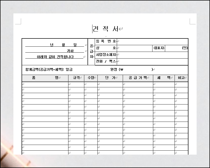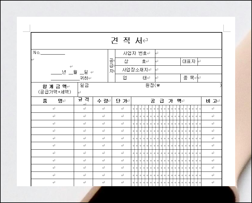 견적서 양식 무료다운 및 꼭 알아야 할 사항