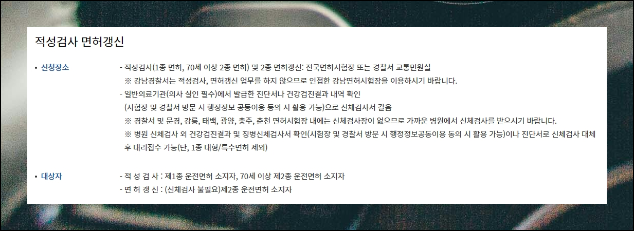 | 고령 운전자 자격유지검사 최신안내, 예약방법 (0) | 2025.04.24 |