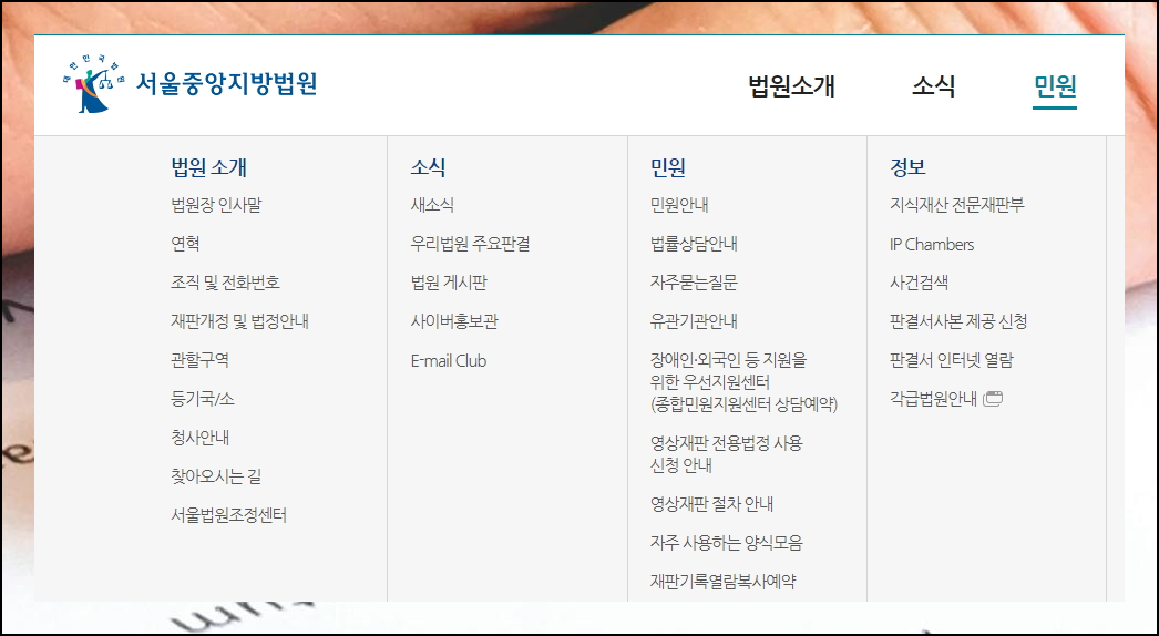 서울중앙지방법원 웹사이트는 단순한 법원 소식 전달을 넘어서 실용적인 차용증 양식을 얻을 수 있어요. 해당 자료를 필요하시다면 민원 메뉴로 들어가서 양식모음 하위메뉴를 선택해 주세요. 사이트 구성이 단순해서 처음 방문하시는 분들도 쉽게 찾을 수 있습니다.