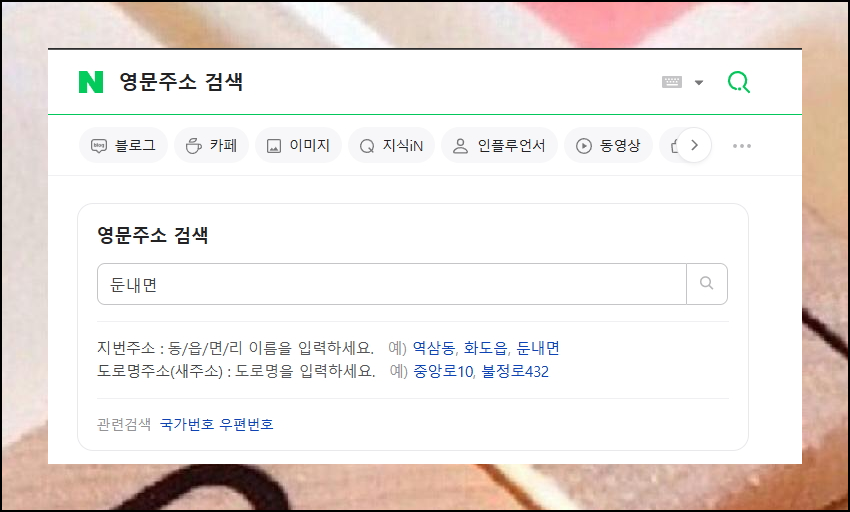 주소 변환 역시 네이버 검색을 통해 간편하게 진행할 수 있습니다. "영문주소 검색"을 검색하면 즉시 변환 프로그램이 나타나요. 원하는 지번이나 도로명 주소를 정확히 입력하고 검색하면 바로 결과를 확인할 수 있습니다.