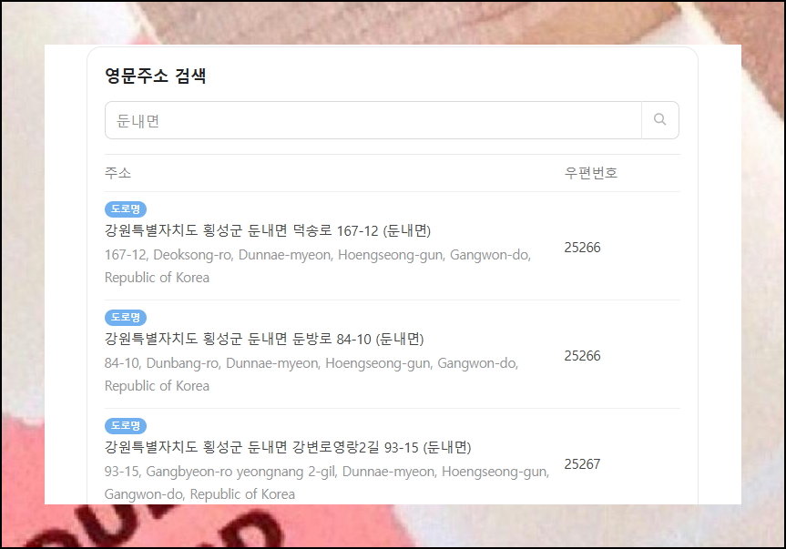 변환된 영문 주소는 단순한 번역을 넘어서 국제 표준 형식에 맞춰 체계적으로 재구성됩니다. 지역명의 순서가 글로벌 기준에 맞게 조정되고 우편번호도 함께 제공되어 매우 실용적이에요.