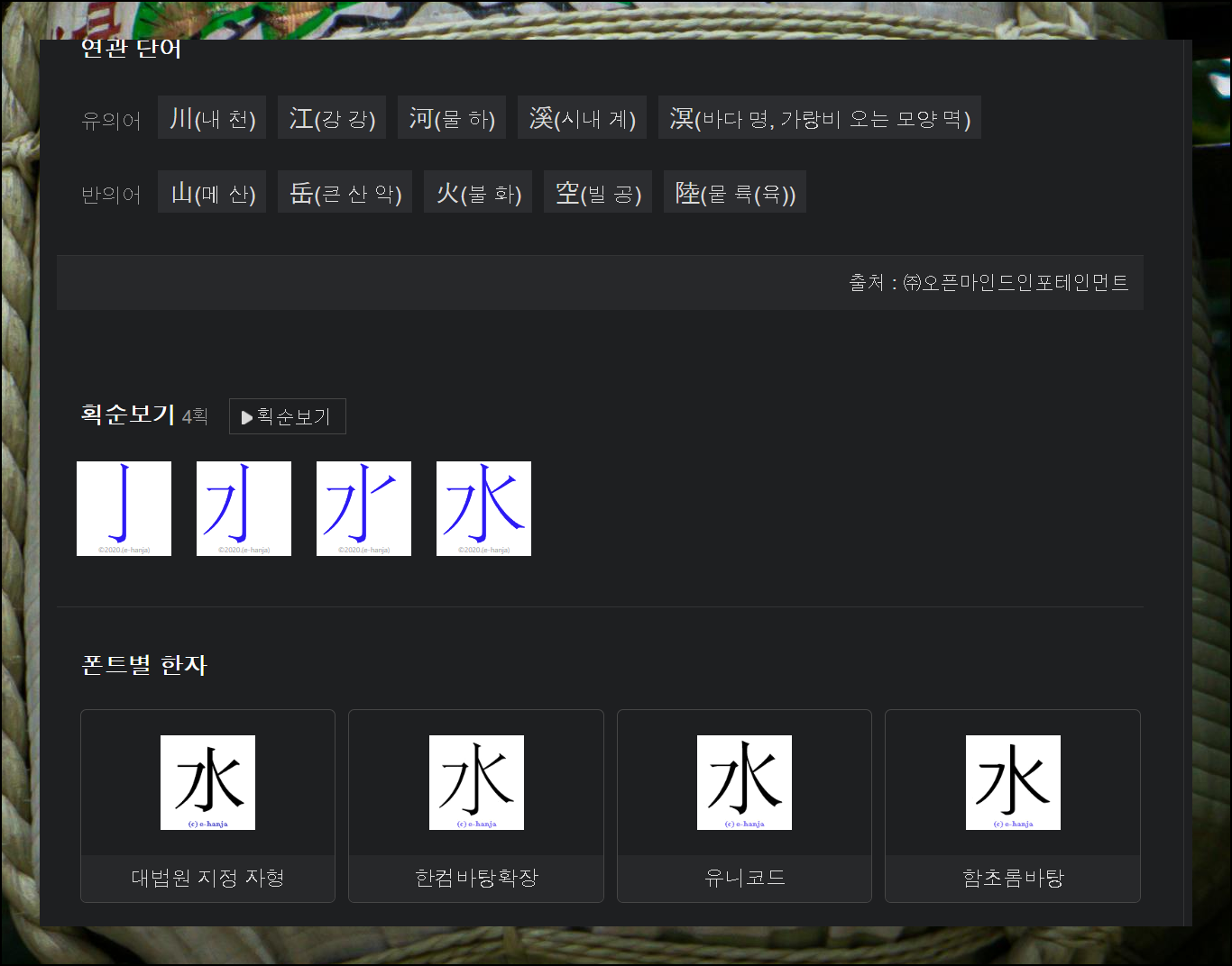 획순 보기가 빠르다면 상세 설명을 참고하세요. 한문 번역기에서 제공하는 이형동의자나 유의어, 반의어를 함께 공부하면 한자 실력이 더욱 늘어날 거예요.
