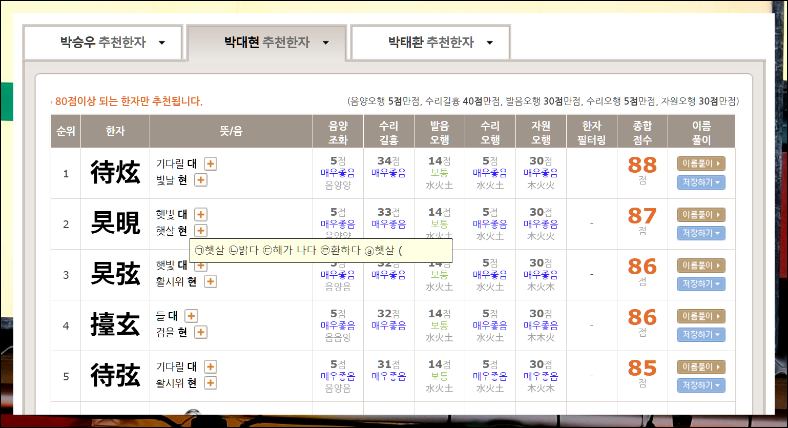 인터넷 작명소에서 이름 풀이와 무료 작명 서비스 중에서 선호 이름 작명 메뉴를 선택하시면 됩니다. 성명 풀이 서비스는 나중에 필요할 때 이용해보세요. 각 메뉴의 특징을 잘 파악하면 도움이 됩니다.