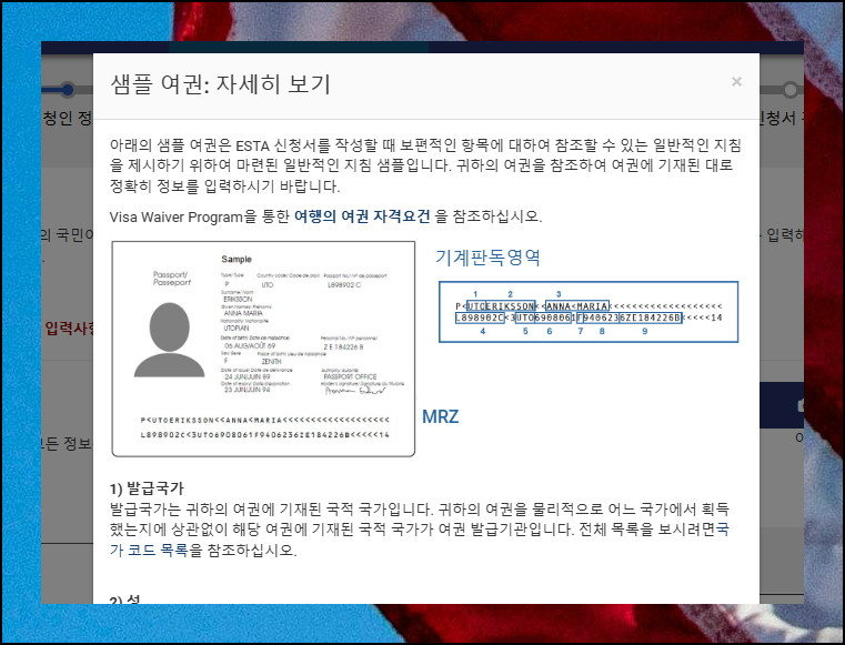 샘플 여권을 통해 어떤 정보를 어디서 찾아야 하는지 쉽게 확인할 수 있습니다. 기계판독영역의 각 번호가 의미하는 바를 자세히 설명해 놓았어요. 예를 들어 1번은 발급 국가를 나타냅니다. 이는 관광객과 비자 신청자 모두에게 해당되는 방법입니다.