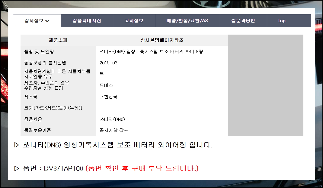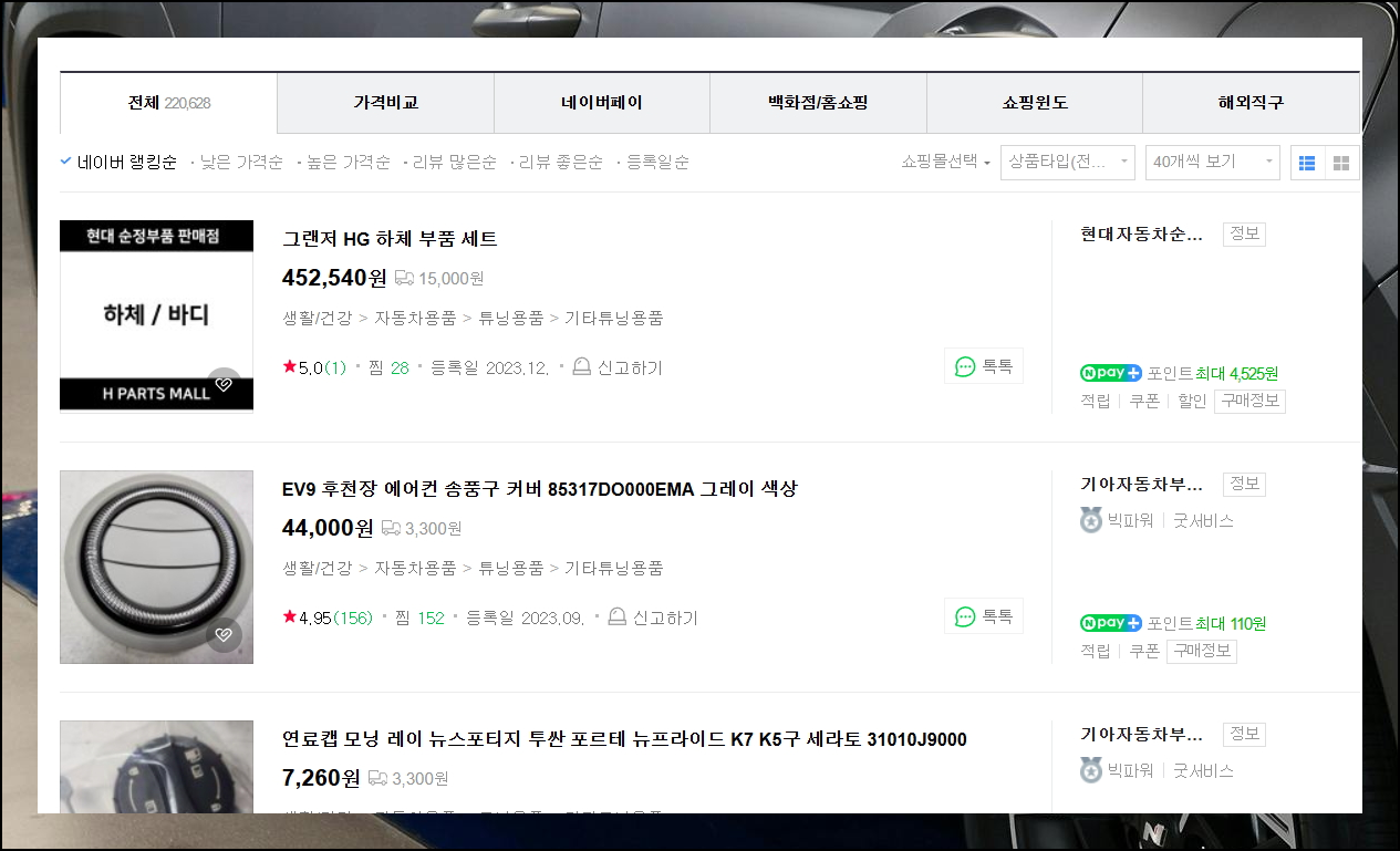 구매시 품번과 모델명은 기본이에요. 차종 적합성과 출시 시기, 인증 여부도 확인해야 합니다. 가격이 20만원 이상이면 배송비가 무료이며, 기본 요금은 4천원이에요.