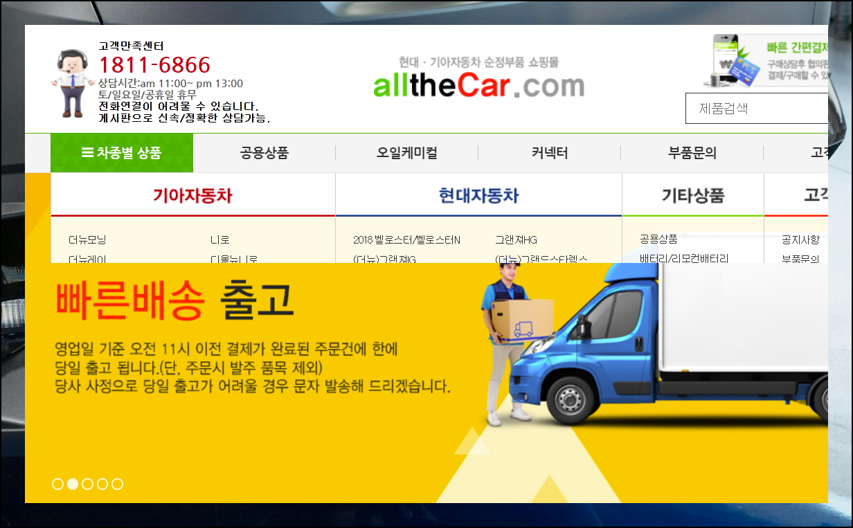 차량 수리나 소모품 교체가 시급한 상황이 자주 발생하죠. 올더몰은 이런 필요를 반영해서 오전 11시 전 결제 건에 대해 당일 출고 서비스를 제공합니다.