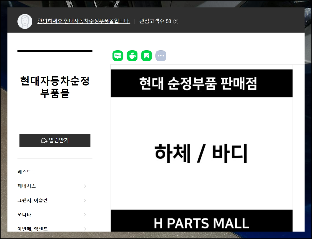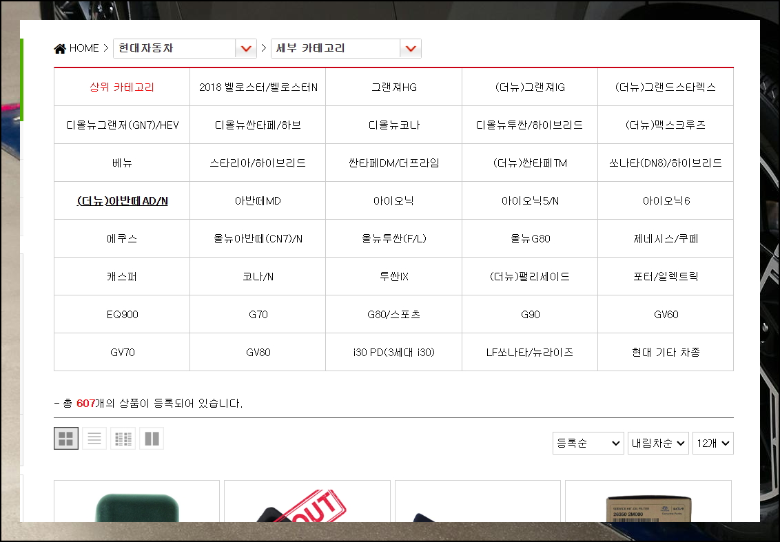 현대자동차의 모든 라인업을 아우르는 폭넓은 카테고리가 있어요. 소나타부터 펠리세이드까지 인기 차종은 물론 각종 순정품들도 쉽게 찾을 수 있습니다.