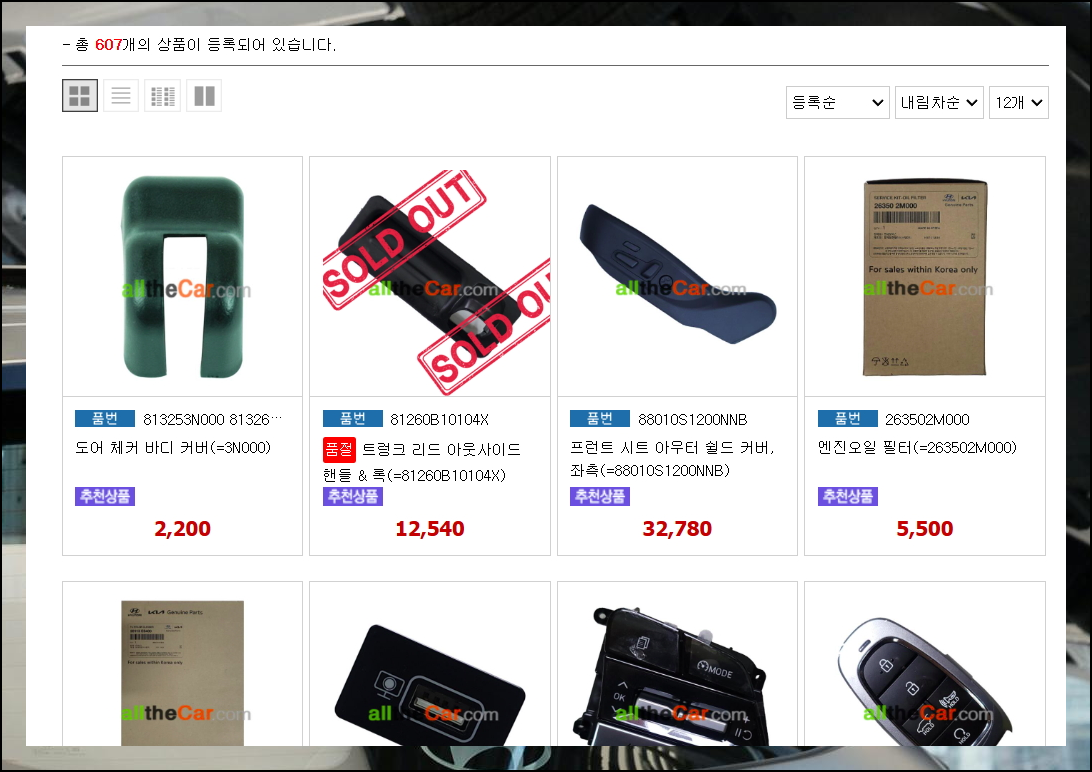 현재 현대자동차의 순정부품을 500여 개 이상의 보유하고 있는 올더카는 인터넷 쇼핑몰 중에서도 높은 인지도를 자랑합니다. 현재 상품 등록 수가 계속 늘어나고 있어서 선택의 폭이 넓어지고 있어요. 온라인 서비스 특성상 가격도 저렴한 편입니다.