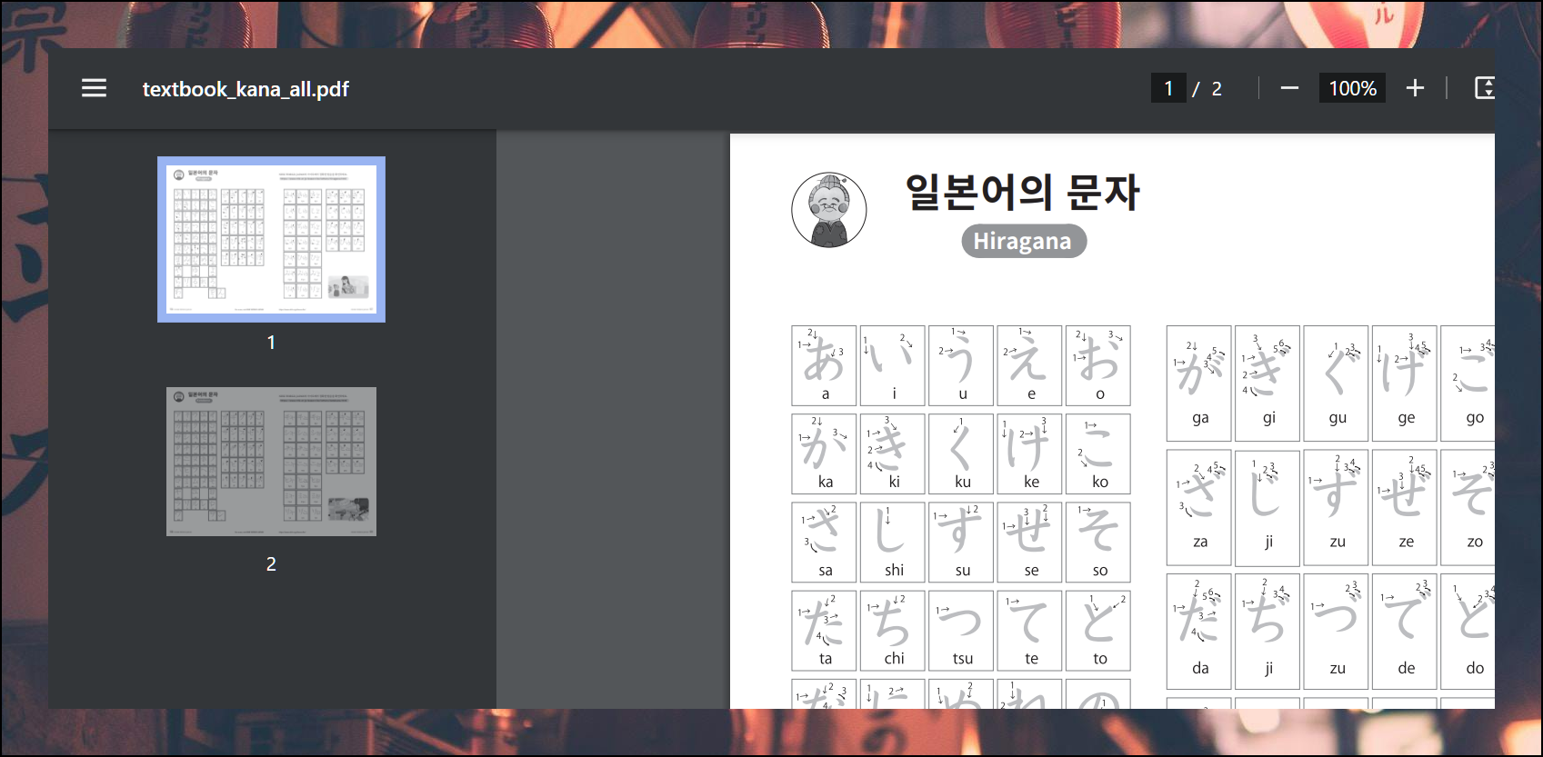 히라가나 표 가타카나 표 다운로드, 무료로 이용공하는 일본어 학습 콘텐츠