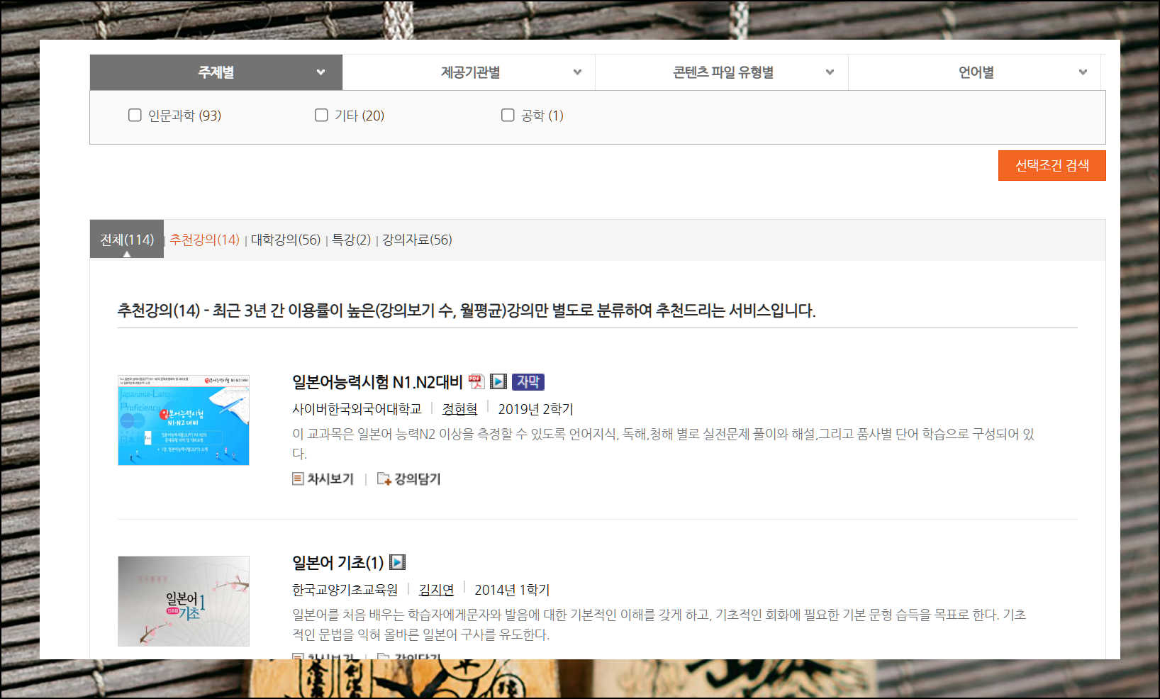 KOCW에서 제공하는 무료 강좌는 정말 다양해요. 인문과학부터 공학까지 모든 분야를 아우르고 있습니다. 일본어 수업을 찾고 싶다면 검색창에 키워드만 입력하면 돼요.