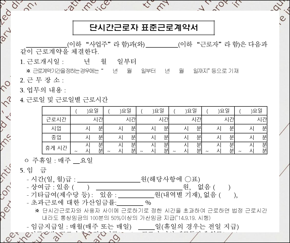 단시간 근로자와 계약할 때는 특별한 주의가 필요해요. 매일의 근무 시간이 다르다면 표로 정리해서 기록해주세요. 이렇게 하면 나중에 발생할 수 있는 문제를 예방할 수 있습니다. 근무일정을 명확하게 기록하는 것이 모두에게 도움이 됩니다. 고용노동부에서는 이런 세세한 부분까지 안내하고 있어요.