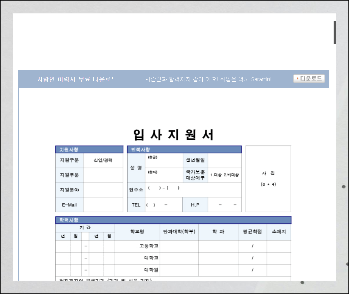 취업 준비 과정에서 많은 분들이 이력서 작성에 어려움을 느끼고 계신데요. 사람인에서 제공하는 이력서 양식 무료다운 서비스를 활용하면 전문적인 문서를 쉽게 작성할 수 있습니다.
