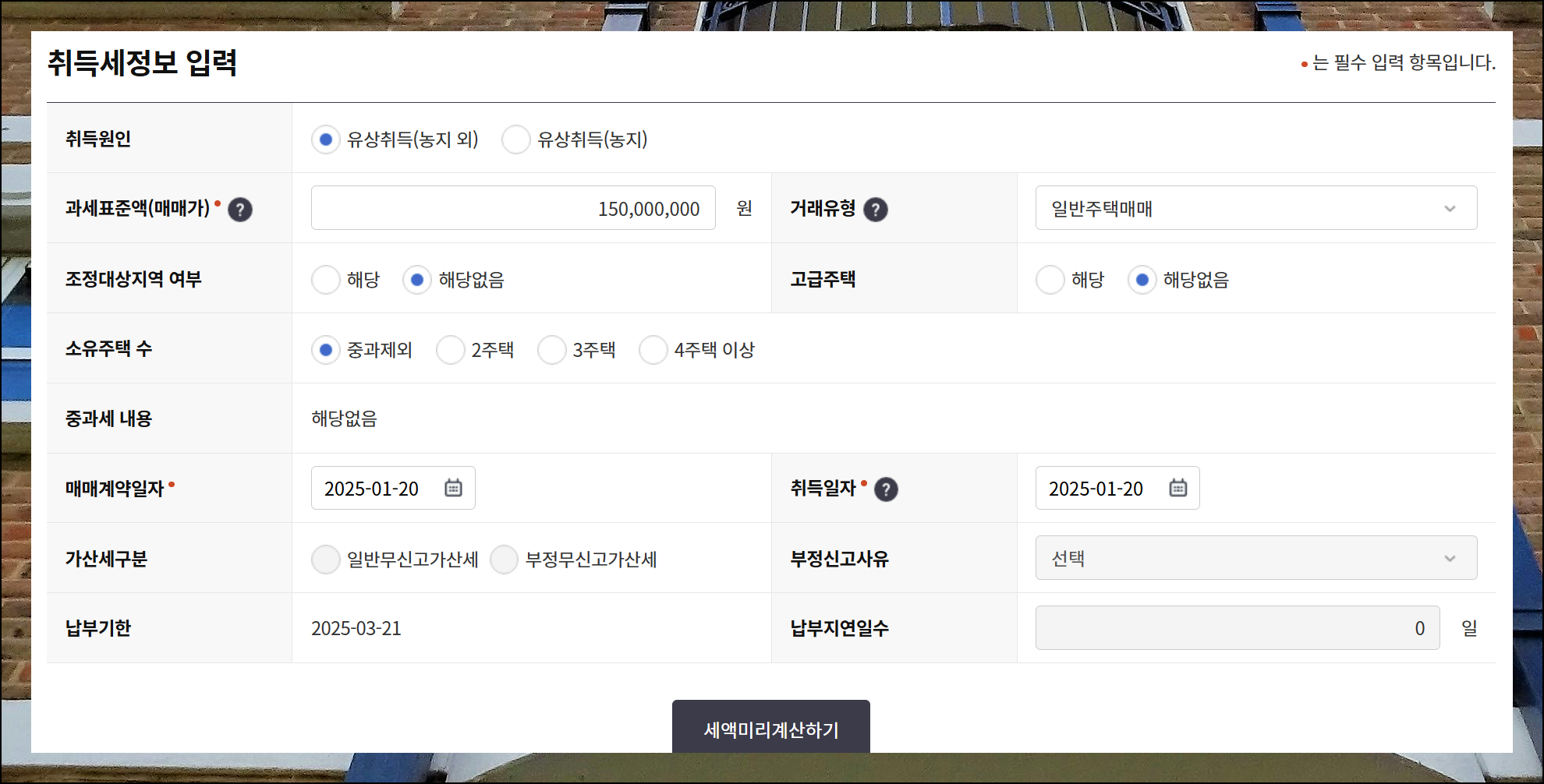부동산 자동 계산하기 서비스를 이용하면 매매가와 취득일자만 입력해도 정확한 세액이 나온다는 사실, 알고 계셨나요? 게다가 취득세 감면 대상이라면 자동으로 할인된 금액까지 확인할 수 있으니 더욱 편리하죠. 지금 바로 시작해보세요.