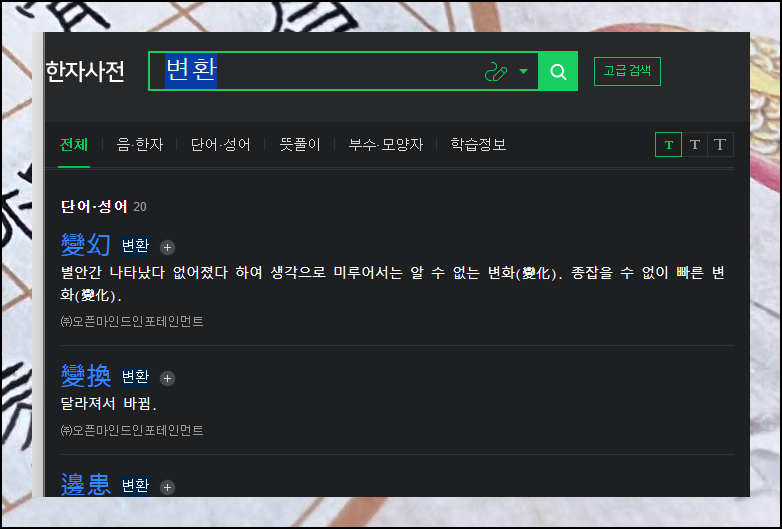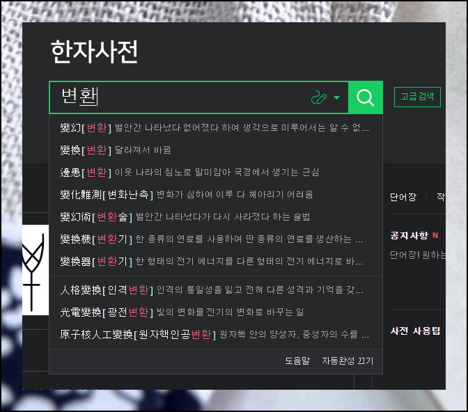 '변환'라는 용어를 선택해 봤더니, 관련된 단어나 성어가 여러 개 나타났어요. 그만큼 한글을 한자로 정확하게 변환하고 싶을 때 유용하게 활용할 수 있답니다.