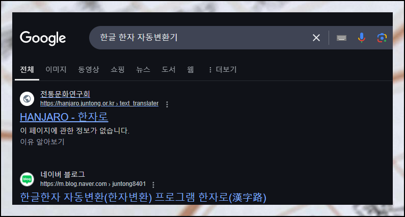 요즘에는 프로그래밍 기술이 놀라울 정도로 발전했어요. 특히 번역 분야에서는 정말 뛰어난 성과들이 눈에 띄고 있죠. 오늘 소개해 드릴 "한자로" 프로그램도 그중 하나랍니다. 첫 번째 방식을 시작하기 위해 "한글 한자 자동 변환기"를 검색해서 전통문화연구회 웹사이트로 접속해 볼게요.