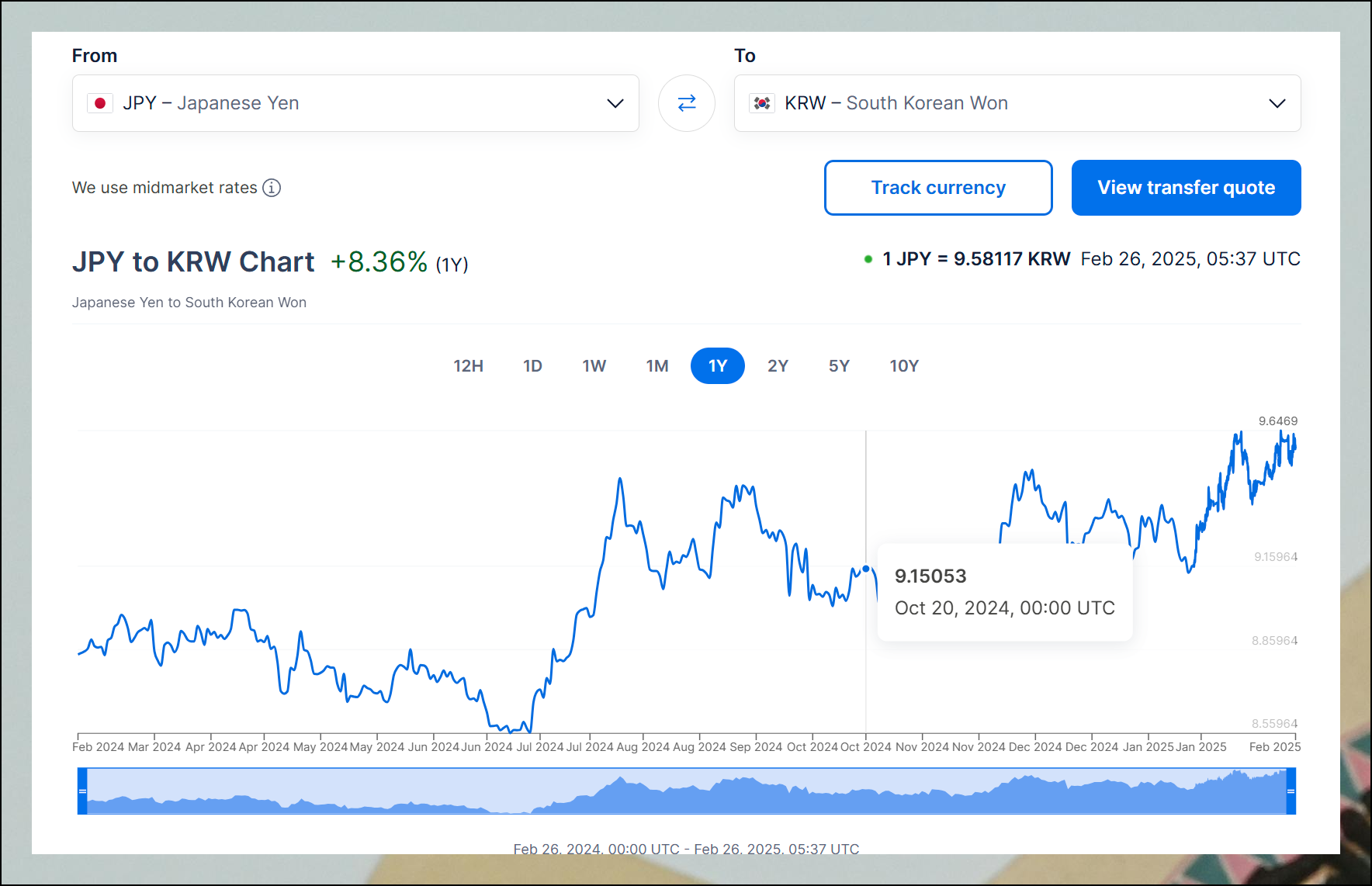 다양한 기간의 원화 대비 엔화 추이를 살펴볼 수 있어요. 하루부터 10년까지의 시세 흐름을 이해할 수 있습니다. 차트 아래에서 통화 종류를 교체하면 다른 외화들의 시세 변화도 쉽게 확인할 수 있어요. 일본 통화뿐만 아니라 다른 나라 화폐의 변환도 같은 방식으로 이용 가능합니다.