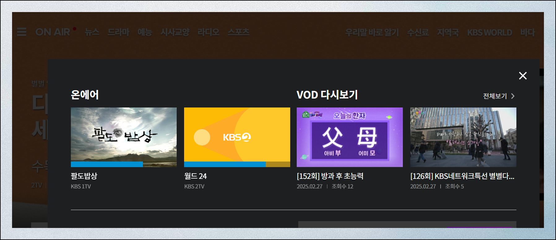 (7) 현재 방송 바로 보기
