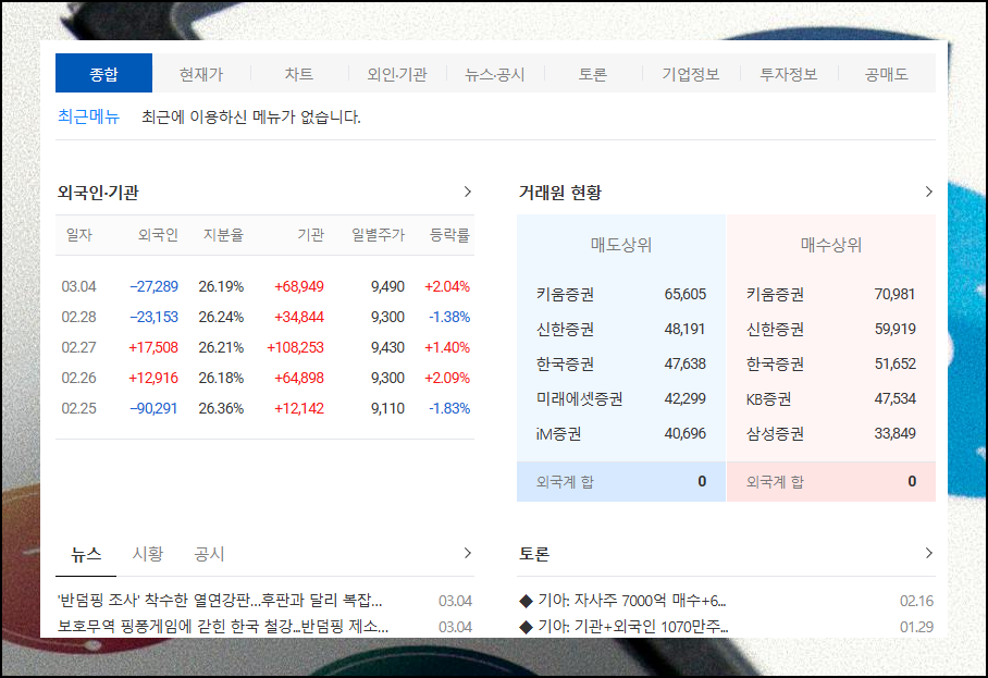 "주가 정보 자세히" 버튼을 누르면 우리가 선택한 개별 종목에 대한 시세, 현재가, 차트, 매매 동향, 뉴스와 공시 등 모든 정보를 한 곳에서 볼 수 있습니다.